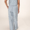 The PATINE wide-leg trousers are made from striped fabric. This model features belt loops at the waist, Italian pockets, and patch pockets at the back. The stripes and straight cut of the PATINE wide-leg trousers create a modern and refined silhouette. The high-rise elastic waistband enhances and elongates feminine curves. The minimalist lines of the PATINE striped trousers evoke a style that is both casual and sophisticated.
